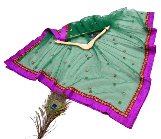 Indian Vintage Heavy Dupatta Green Net Mesh Long Stole Hand Embroidered Scarves Wedding/Party Wear
