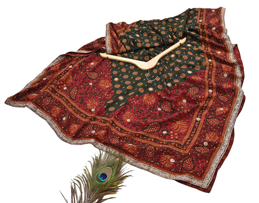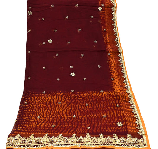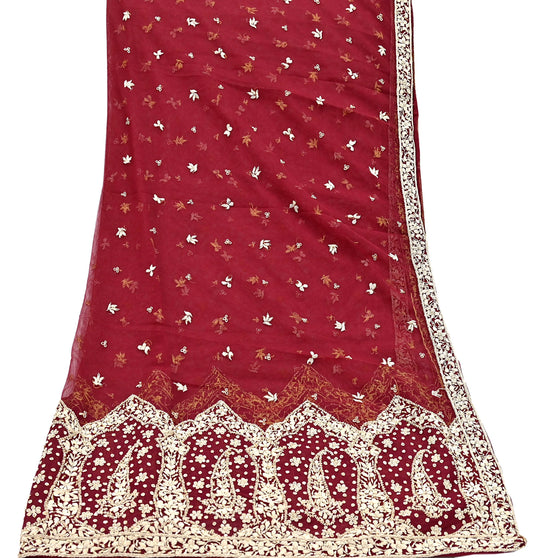 Indian Vintage Heavy Maroon Dupatta Pure Georgette silk Long Stole Hand Embroidered Leheria Scarves Stole Veil Wrap