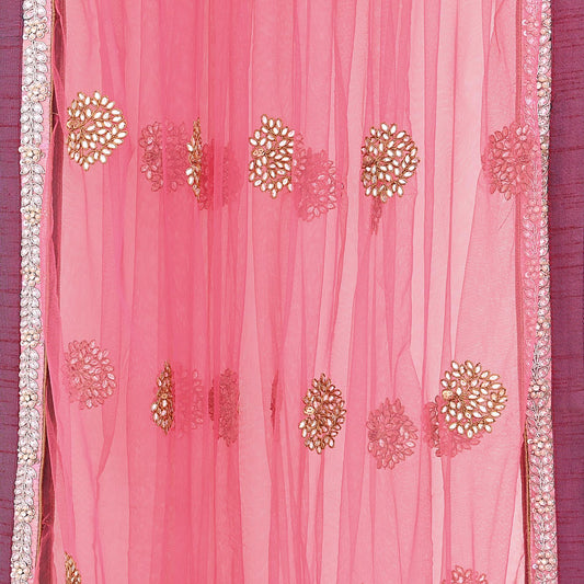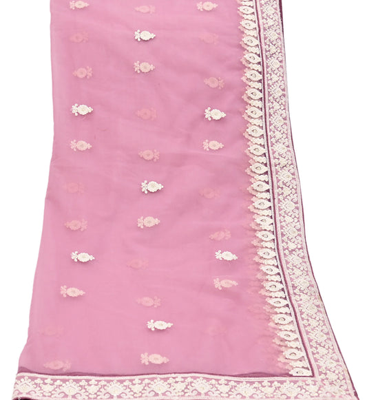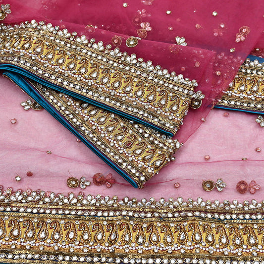 Indian Vintage Heavy Bridal Dupatta Pink Net Mesh Long Stole Hand Embroidered Scarves Patti Wedding/Party Wear