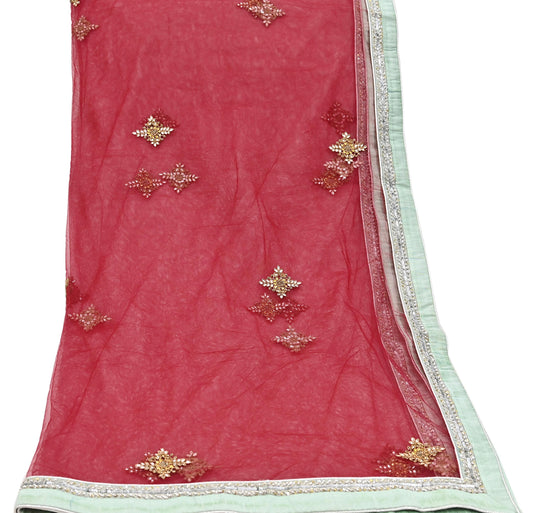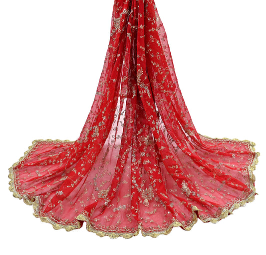 Indian Vintage Heavy Bridal Dupatta Red Net Mesh Long Stole Hand Embroidered Scarves Patti Wedding/Party Wear
