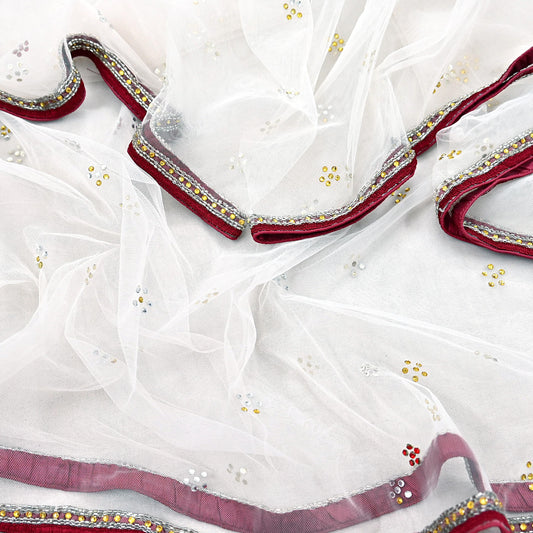 Indian Pre-owned Heavy Maroon Pure Organza Silk Hand Embroidered Dupatta Designer By Tarun Tahiliani Zardozi Bridal Veil