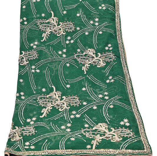 Indian Vintage Heavy Bridal Dupatta Green Net Mesh Long Stole Hand Embroidered Scarves Patti Wedding/Party Wear