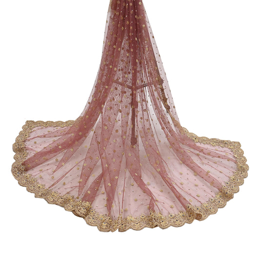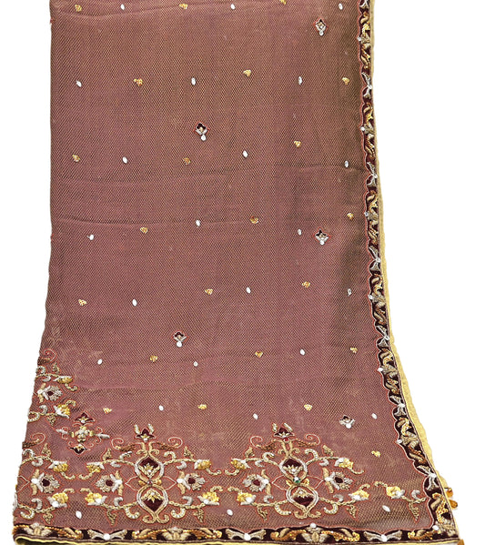 Indian Vintage Heavy Pink Dupatta Net Mesh Long Stole Hand Embroidered Scarves golden Zardozi Dabka Zari Sequins