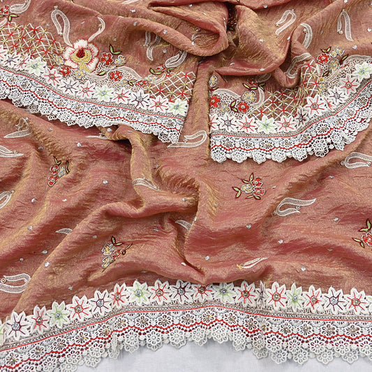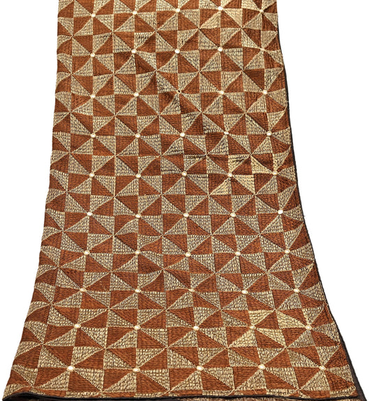 Indian Vintage Brown Heavy Dupatta Long Stole Chanderi Hand Embroidered Bagh Phulkari Stole Scarves Golden lace