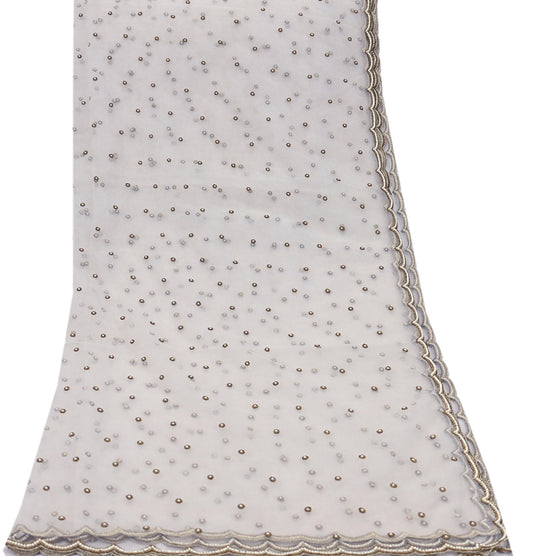 Indian Vintage Heavy Bridal Dupatta White Net Mesh Long Stole Hand Embroidered Scarves Patti Wedding/Party Wear