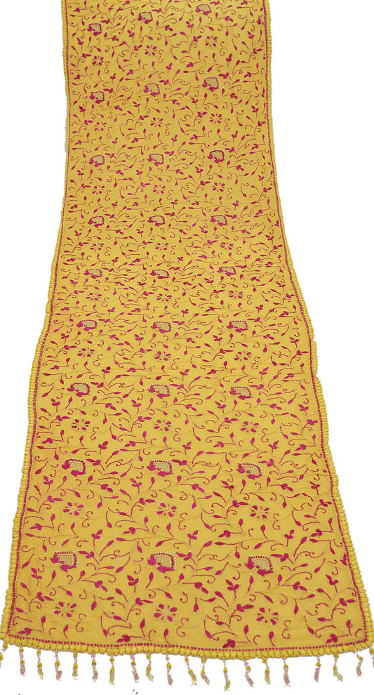 Indian Vintage Yellow Dupatta Long Stole Embroidered Pure Cotton Scarves Veil Sequins Soft