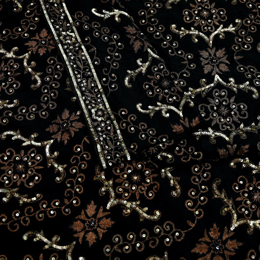 Indian Women Vintage Heavy Black Dupatta Pure silk Long Stole Hand Embroidered Hijab Scarves Veil Wrap Zari