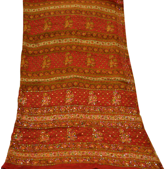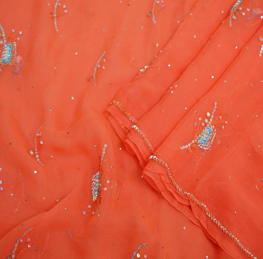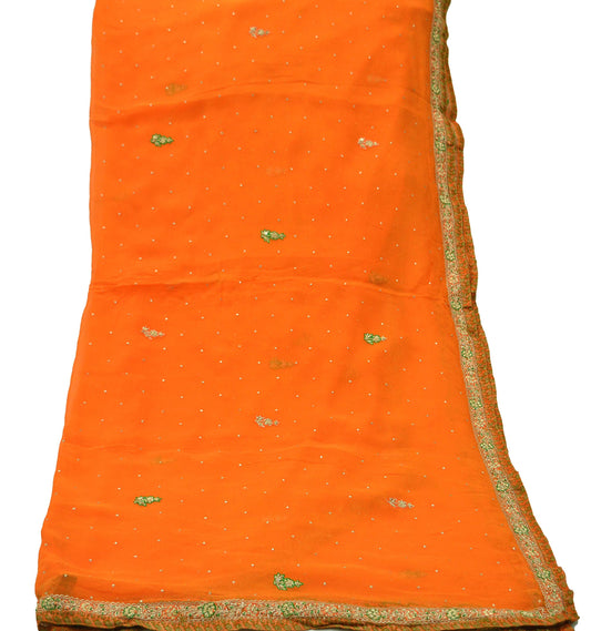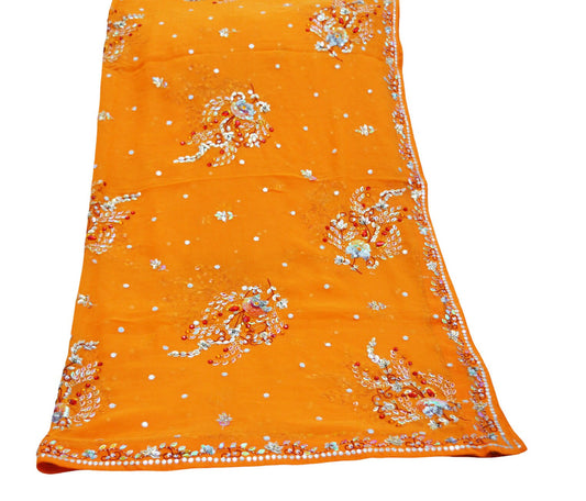Indian Vintage Orange Dupatta Pure Georgette silk Long Stole Hand Embroidered Scarves Stole Veil Wrap Sequins
