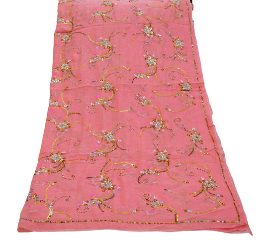 Indian Vintage Pink Dupatta Pure Georgette silk Long Stole Hand Embroidered Scarves Stole Veil Wrap Sequins