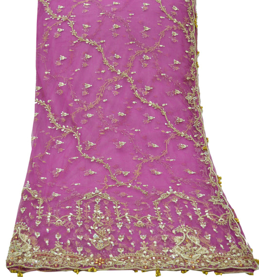 Indian Vintage Pink Dupatta Net Mesh Long Stole Hand Embroidered Scarves Golden Zardozi Zari Sequins Wedding/ Bridal Veil Hijab