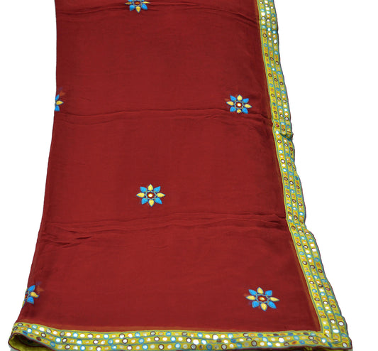 Indian Vintage Red Dupatta Pure Georgette silk Long Stole Hand Embroidered Scarves Stole Veil Wrap Mirror