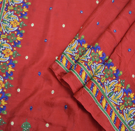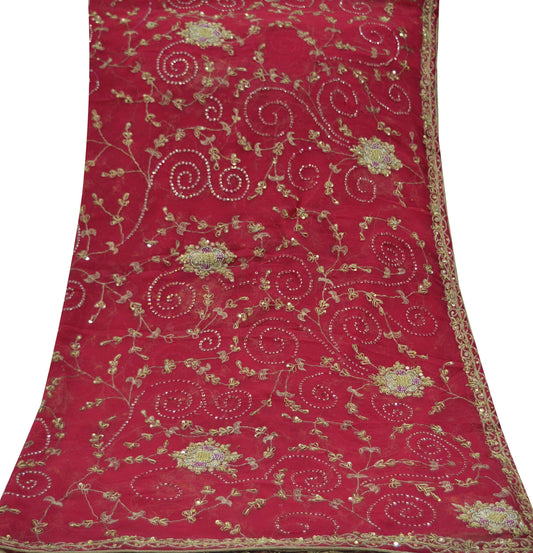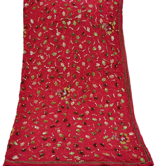Indian Vintage Red Dupatta Pure Georgette silk Long Stole Hand Embroidered Scarves Stole Veil Wrap Sequins