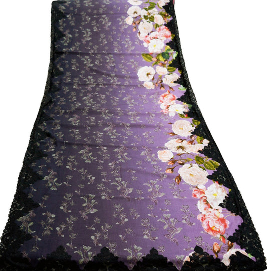 Indian Vintage Purple Dupatta Pure silk Long Stole Hand Embroidered Scarves Floral Design Stole Veil Wrap Zari Zardozi