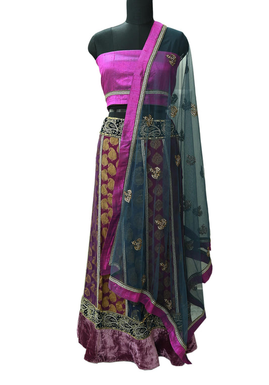 Indian Vintage Multi Pure Georgette Silk Net/Mesh Hand Embroidered Lehenga 3pcs Set Bridal Party Wear With Blouse/Dupatta Bollywood Lehenga