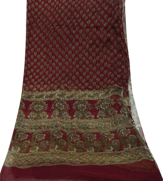 Indian Vintage Maroon Dupatta Long Stole Pure Chiffon Silk Digital Printed Scarves Veil Hijab