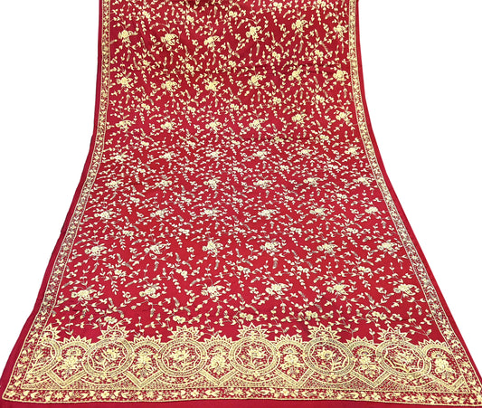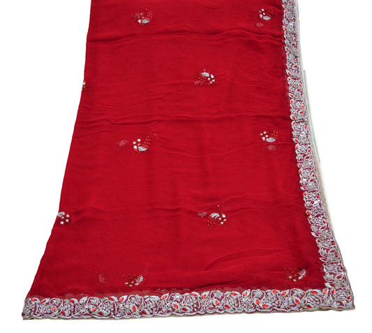 Indian Vintage Hot Red Dupatta Pure Georgette silk Long Stole Hand Embroidered Scarves Floral Design Stole Veil Wrap Zari