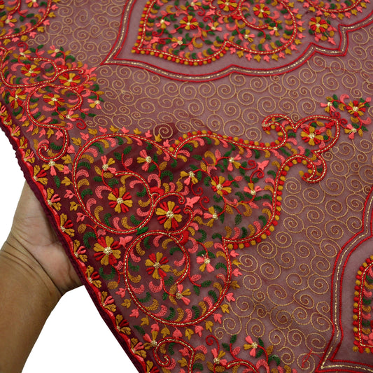 Indian Vintage Maroon Dupatta Pure Georgette Silk Long Stole Hand Embroidered Scarves Floral Design Stole Veil Wrap