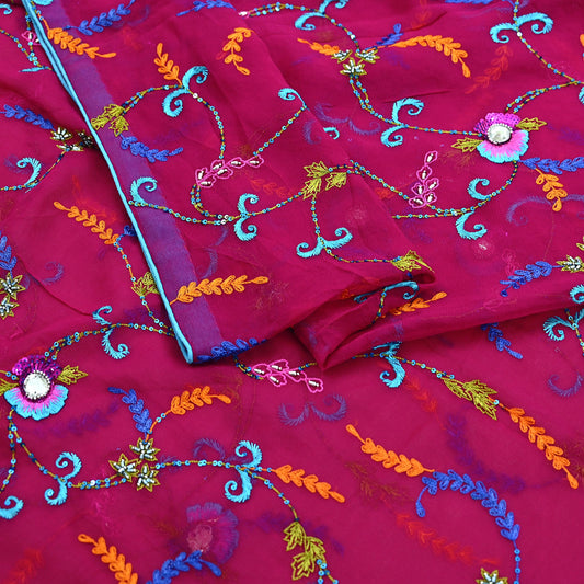 Indian Vintage Magenta Dupatta Pure Georgette silk Long Stole Hand Embroidered Scarves Stole Veil Wrap Sequins