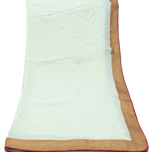 Indian Vintage Ivory Dupatta Pure Georgette silk Long Stole Hand Embroidered Scarves Stole Veil Wrap Sequins