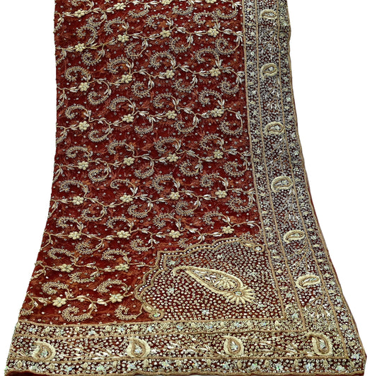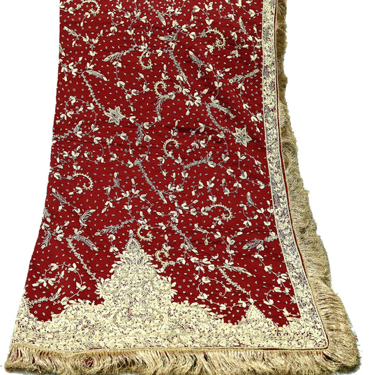 Indian Vintage Maroon Dupatta Pure Georgette silk Long Stole Hand Embroidered Scarves Stole Veil Wrap Sequins Zardozi