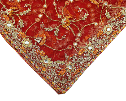 Indian Vintage Heavy Wedding Red Net/Mesh/ Velvet Hand Embroidered Dupatta Designer By Anamika Khanna Bridal Wear Dabka Zardozi Veil Hijab