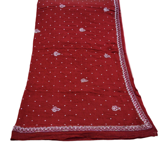 Indian Vintage Maroon Dupatta Pure silk Long Stole Hand Embroidered Scarves Sequins Stole Zari