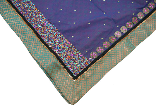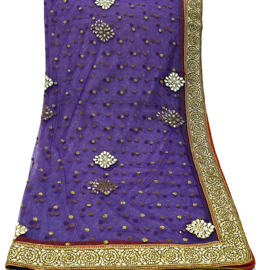 Indian Vintage Heavy Purple Dupatta Net Mesh Long Stole Hand Embroidered Scarf Veil Zari Sequins Wedding Wear Brocade Border