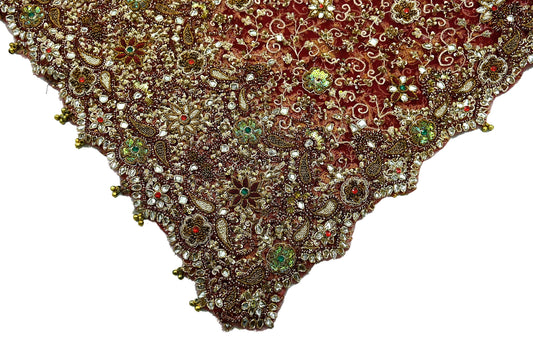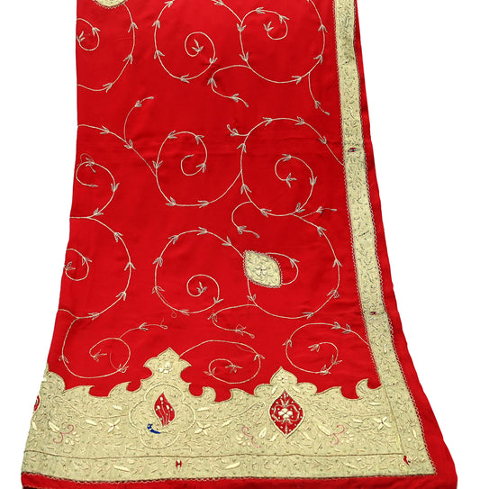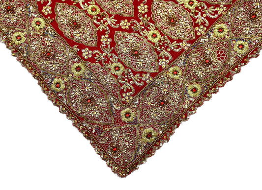 Indian Vintage Heavy Red Dupatta Pure Georgette Silk Long Stole Hand Embroidered Scarf Zardozi/Dabka Bridal/Wedding Veil Hijab