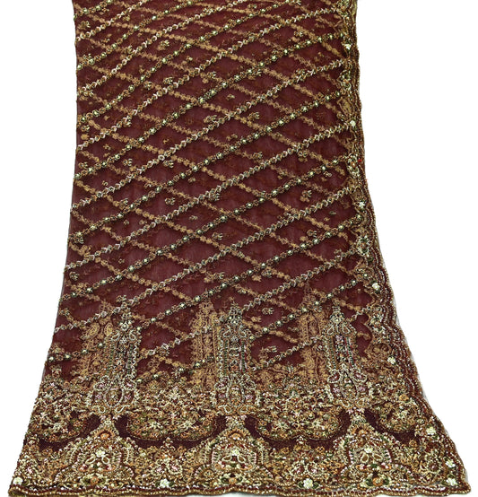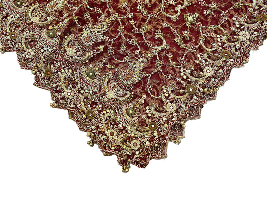 Indian Vintage Heavy Wedding Maroon Dupatta Net Mesh Long Stole Hand Embroidered Scarves Golden Zardozi Zari Sequins Dridal Veil Hijab