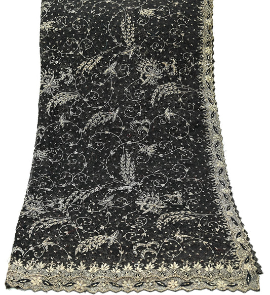 Indian Vintage Heavy Wedding Black Dupatta Pure Organza Silk Long Stole Hand Embroidered Scarves Zardozi Zari Bridal Veil Wrap Hijab