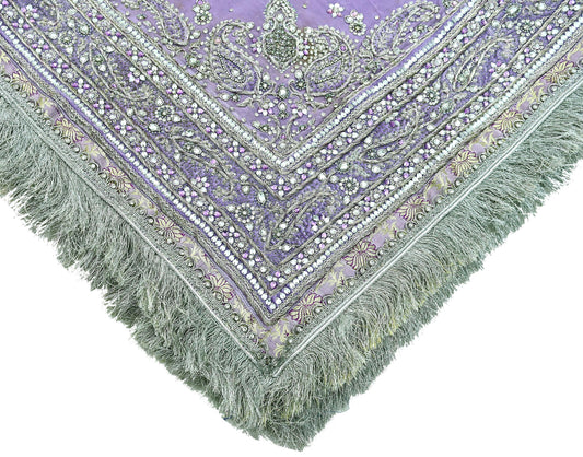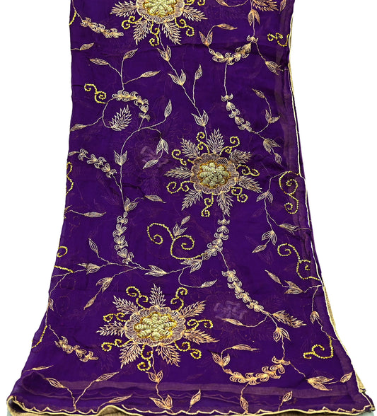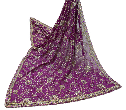 Indian Vintage Heavy Purple Dupatta Pure Georgette Silk Long Stole Hand Embroidered Scarf Zardozi/Dabka Zari Sequins