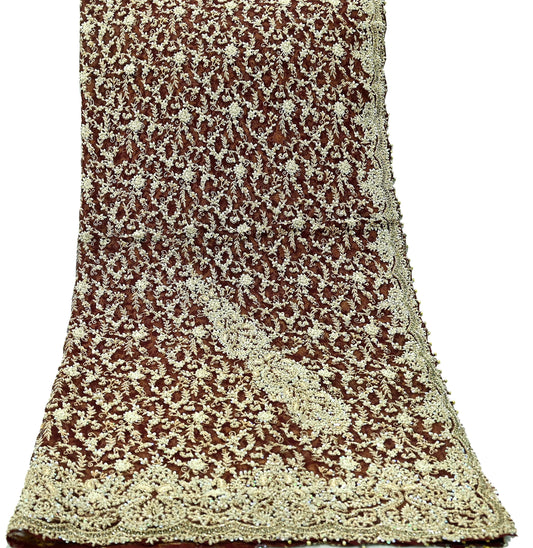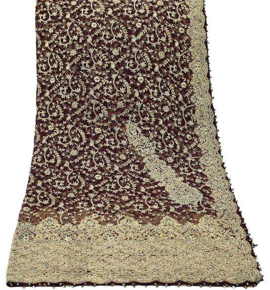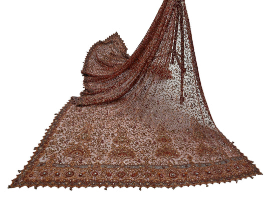 Indian Vintage Heavy Wedding Brown Dupatta Pure Organza Silk Long Stole Hand Embroidered Scarves Zardozi Zari Bridal Veil Wrap Hijab