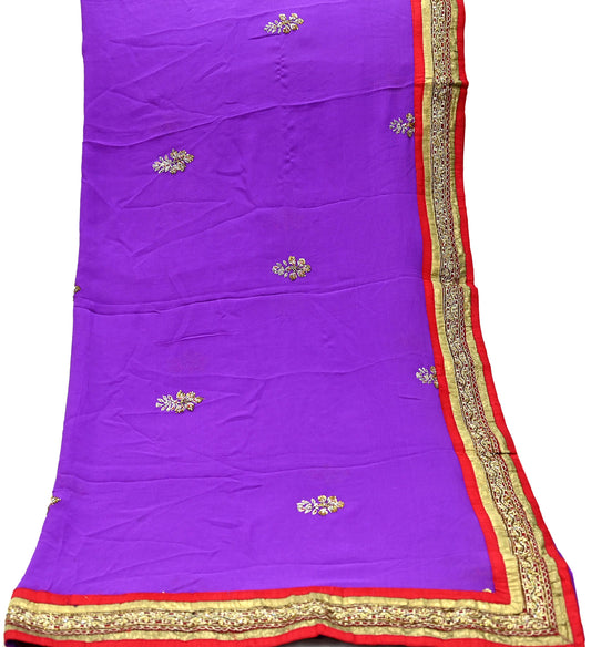 Indian Vintage Heavy Purple Dupatta Pure Georgette Silk Long Stole Hand Embroidered Gota Patti Scarf Zari
