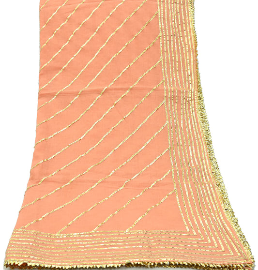 Indian Vintage Dupatta Peach Pure Cotton Long Stole Gota Patti Work Scarves Veil Soft