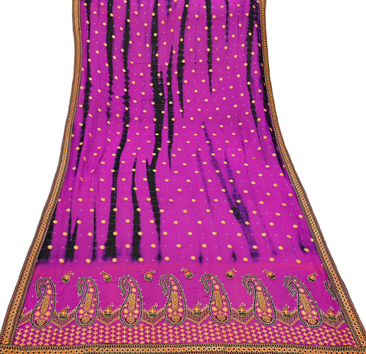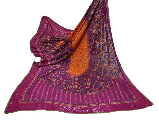 Indian Vintage Dupatta Purple & Black Pure Georgette silk Long Stole Embroidered Tie-Dye Scarves Stole Veil Wrap Sequins Zari