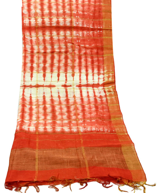 Indian Vintage Dupatta Orange & White Long Stole Hand Tie-Dye Pure Chanderi Silk Scarves Veil Zari Soft Fringes Scarf Wrap Boho