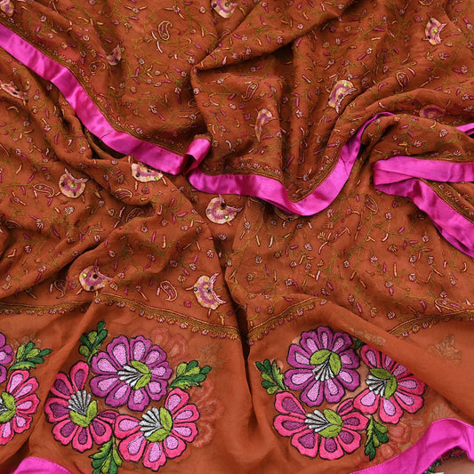 Indian Vintage Dupatta Rusty Long Stole Hand Embroidered Suzani stole Pure Georgette Silk Scarves Veil Wrap Soft Floral