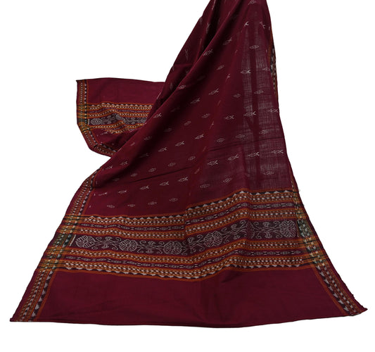 Indian Vintage Dupatta Maroon Long Stole Hand woven Sambalpuri Ikat Hijab Pure Cotton Scarves Veil