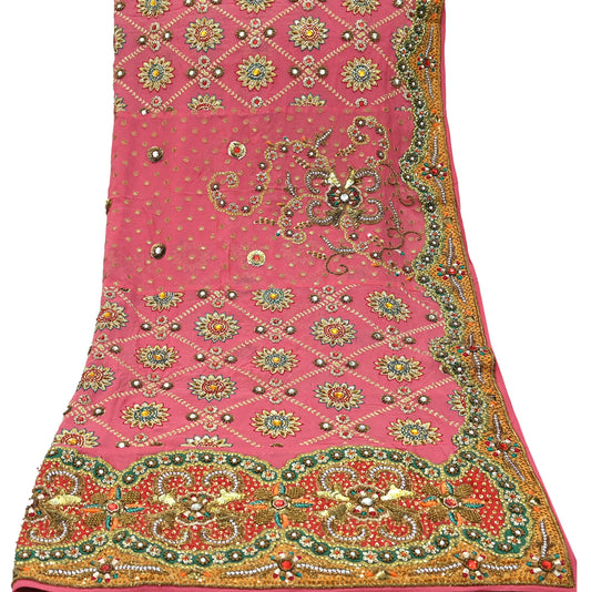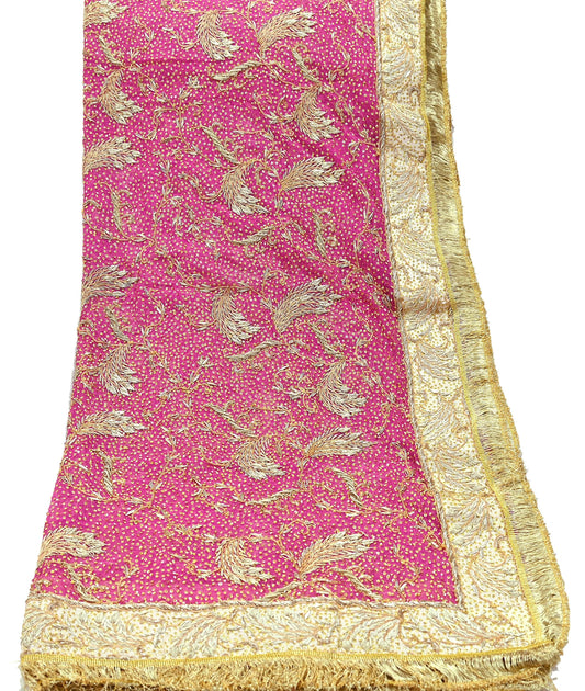 Indian Vintage Heavy Bridal Dupatta Pink Pure Georgette Silk Long Stole Hand Embroidered Scarf Zardozi/Dabka Zari Wedding/Party Dupatta