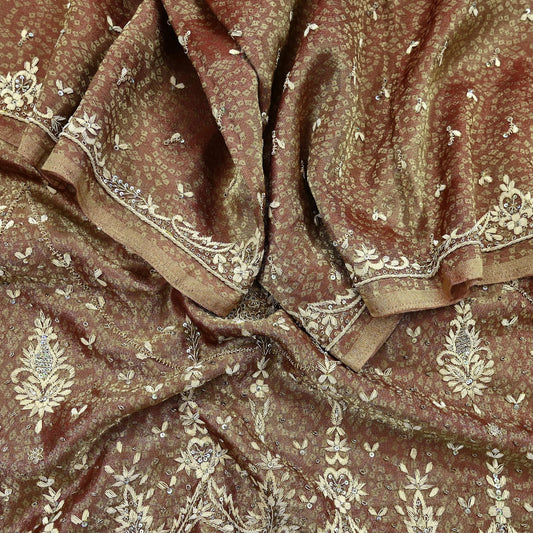 Indian Vintage Heavy Bridal Dupatta Golden Maroon Pure Tissue Silk Long Stole Hand Embroidered Scarves Zari Zardozi/Dabka Wedding Hijab