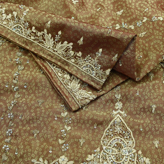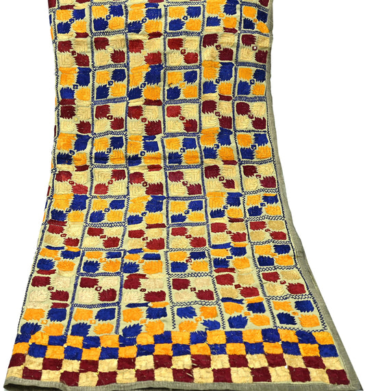 Indian Vintage Beige Heavy Wedding Dupatta Long Stole Crepe Silk Hand Embroidered Bagh Phulkari Stole Scarves