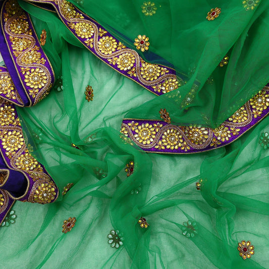 Indian Vintage Heavy Bridal Dupatta Green Net Mesh Long Stole Hand Embroidered Scarves Patti Wedding/Party Wear