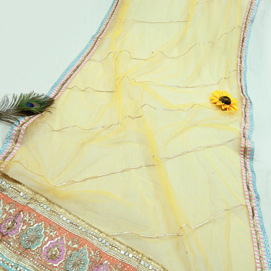Indian Vintage Heavy Bridal Dupatta Yellow Net Mesh Long Stole Hand Embroidered Scarves Golden Gota Patti Wedding/Party Wear
