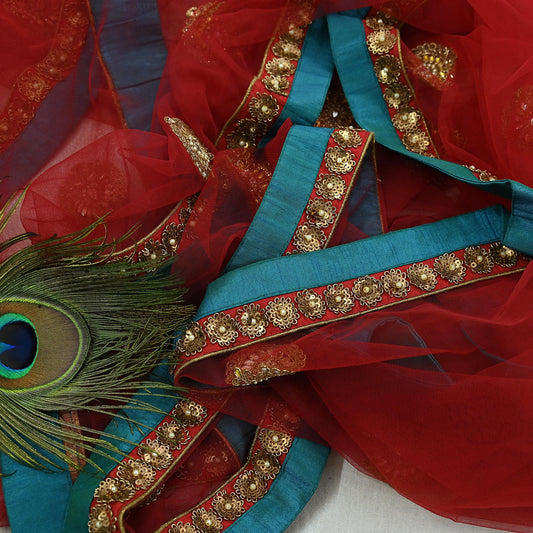 Indian Vintage Heavy Bridal Red Dupatta Net Mesh Long Stole Hand Embroidered Scarves Zardozi Dabka Zari Wedding dupatta veil hijab