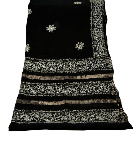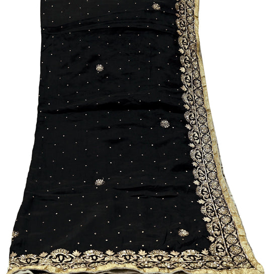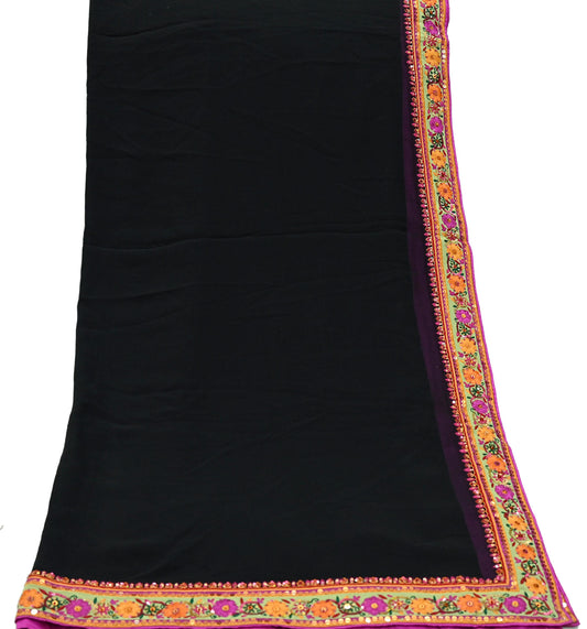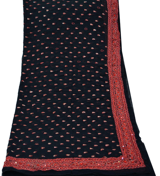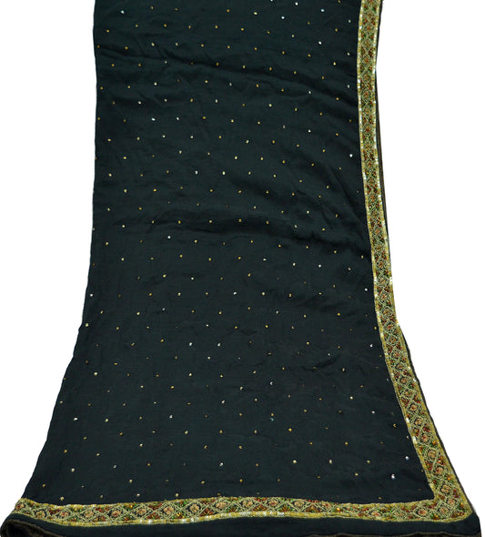 Indian Vintage Dupatta Black Pure Georgette silk Long Stole Embroidered Scarves Veil Wrap Sequins Boho
