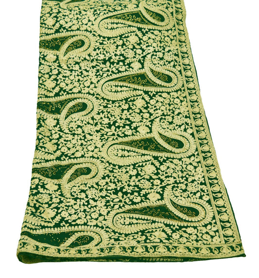 Indian Vintage Bottle Green Dupatta Long Stole Georgette Hand Embroidered Indian Scarves Veil Scarf Wrap Hippie Boho