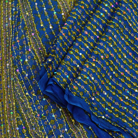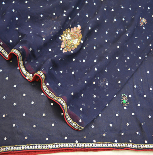 Indian Vintage Deep Blue Dupatta Pure Georgette silk Long Stole Hand Embroidered Scarves Stole Veil Wrap Sequins