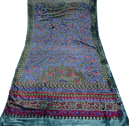 Indian Vintage Dupatta Gray Long Stole velvet Brasso Scarves Veil Hijab Wrap Floral Boho
