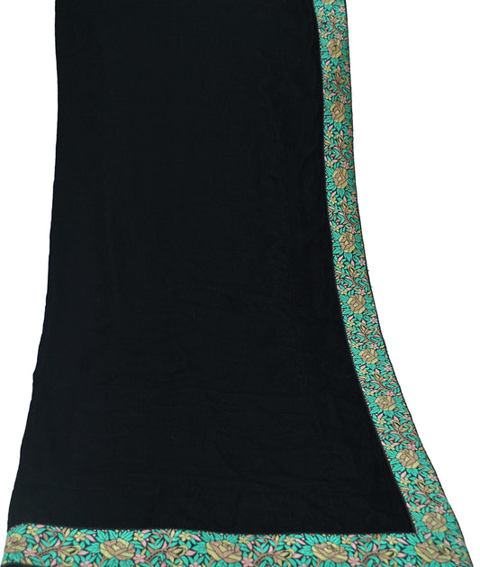 Indian Vintage Black Dupatta Pure silk Long Stole Hand Embroidered Scarves Floral Design Stole Veil Wrap Zari Zardozi