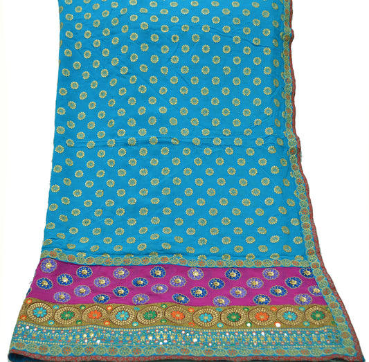 Indian Vintage Blue Dupatta Pure Georgette silk Long Stole Hand Embroidered Scarves Stole Veil Wrap Sequins